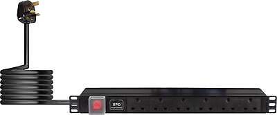19 Inch Rackmount PDU 6 Way 13A UK Plug Horizontal Socket Surge Protec