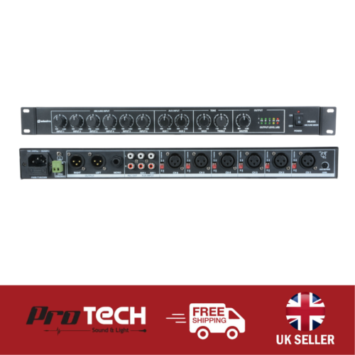 1U Mic Line Rack Mixer ML622 6 Mic Plus 2 Aux Adastra