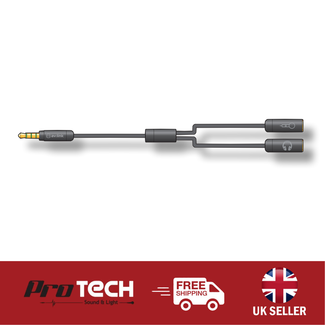 Splitter lead made up of a 3.5mm stereo jack plug to headphone and microphone jack sockets. Sleek connectors with slimline metal bodies are ideal for connecting mobile phones, tablets and gaming consoles to headsets and headphones with an external microphone.