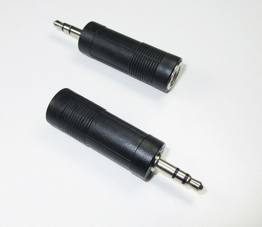 Converts a big 6.35mm stereo jack Plug to a small 3.5mm stereo jack.