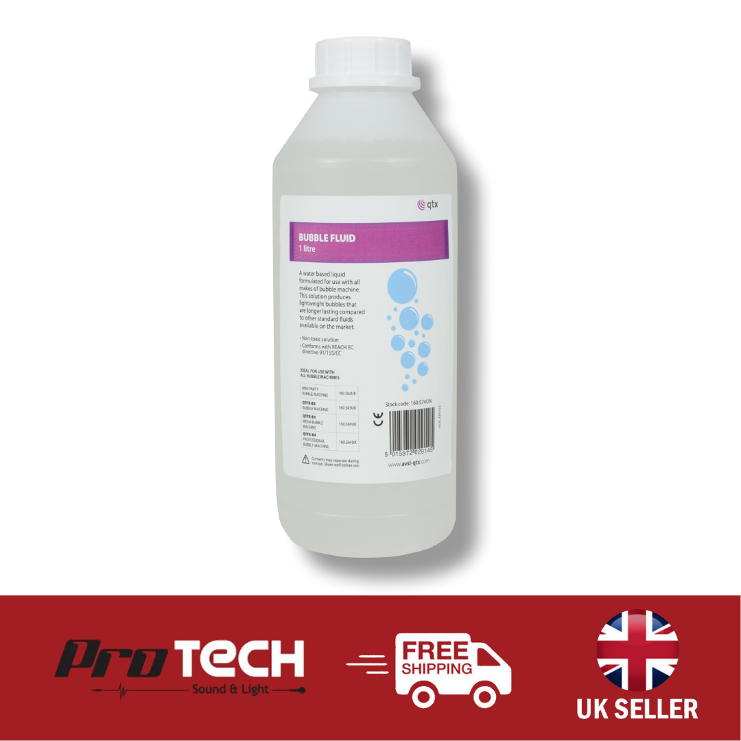 A water-based bubble fluid liquid suitable for use with all makes of bubble machine. Formulated to produce lighter, longer-lasting bubbles than other standard fluids.