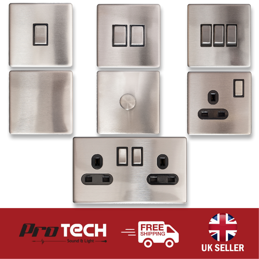 New Range of chrome screwless light switches/dimmers and sockets. Brushed chrome finish. Designed for UK and indoor use.