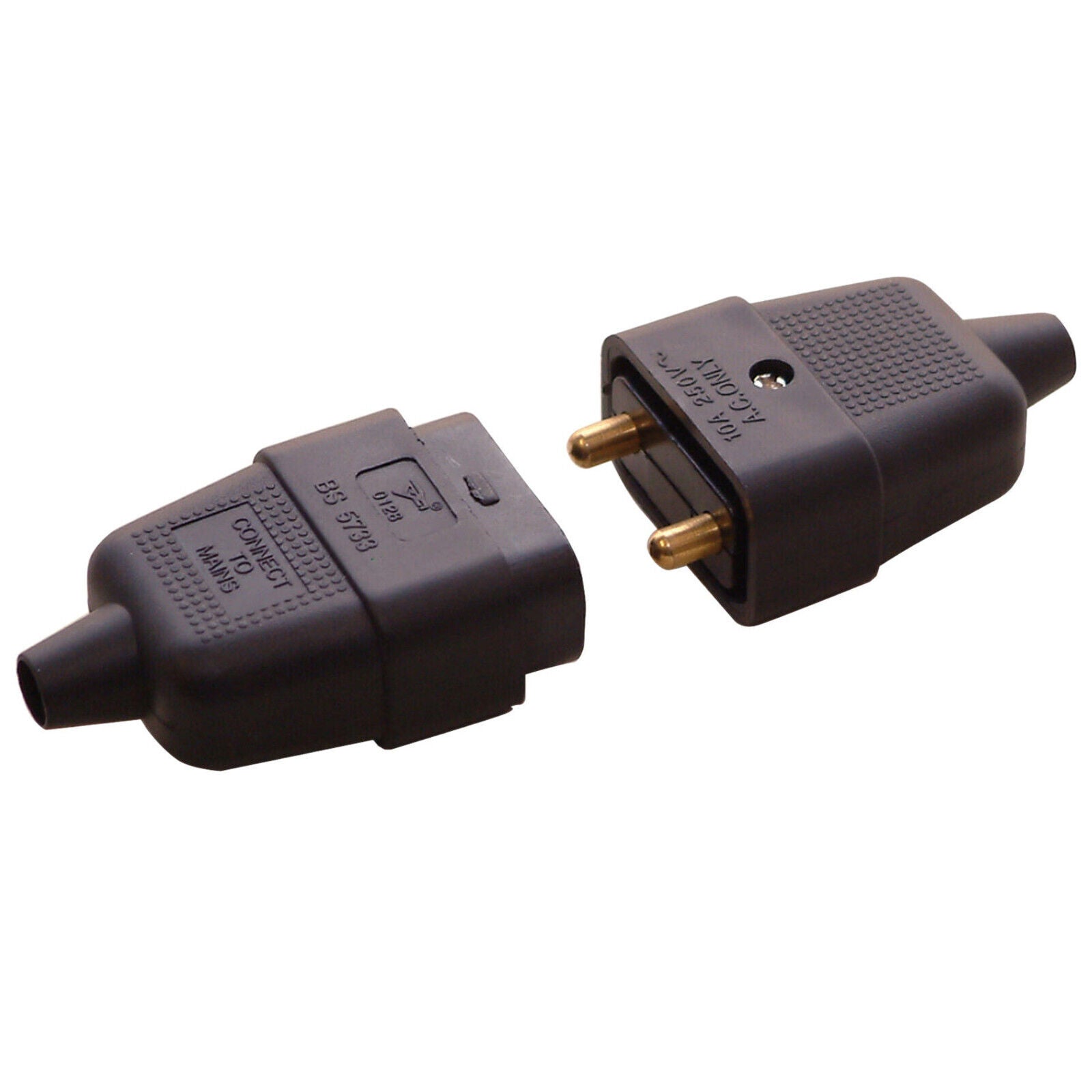 Black 2 pin in-line impact resistant connector (10 A). Suitable for double-insulated products only.2 Way 10 A In-line Connector