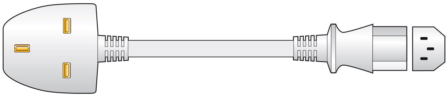 A variation of UK 3 pin plug to IEC C13 female plug in white or black, various lengths available to suit all projects. 3 cores mains power lead, suitable for connecting power to general electronic equipment up to 2300W (10A).