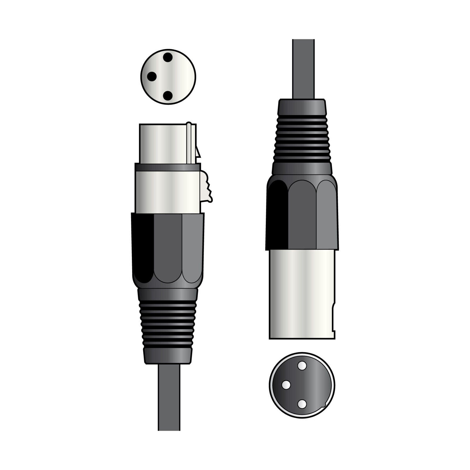A fully shielded microphone and audio lead. XLR male to female balanced cable. Made with a soft-grip, anti-tangle, rubberised jacket. Machine soldered connections and professional, locking, die-cast XLR male and female connectors.