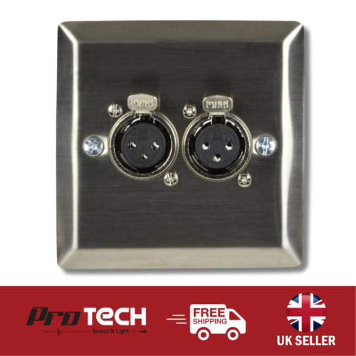 Brushed steel standard wallplate with 2 XLR socket and solder terminal connections. Ideal for connecting 2 XLR audio devices in a different location without the need for trailing wires. Suitable for domestic, commercial or educational applications.